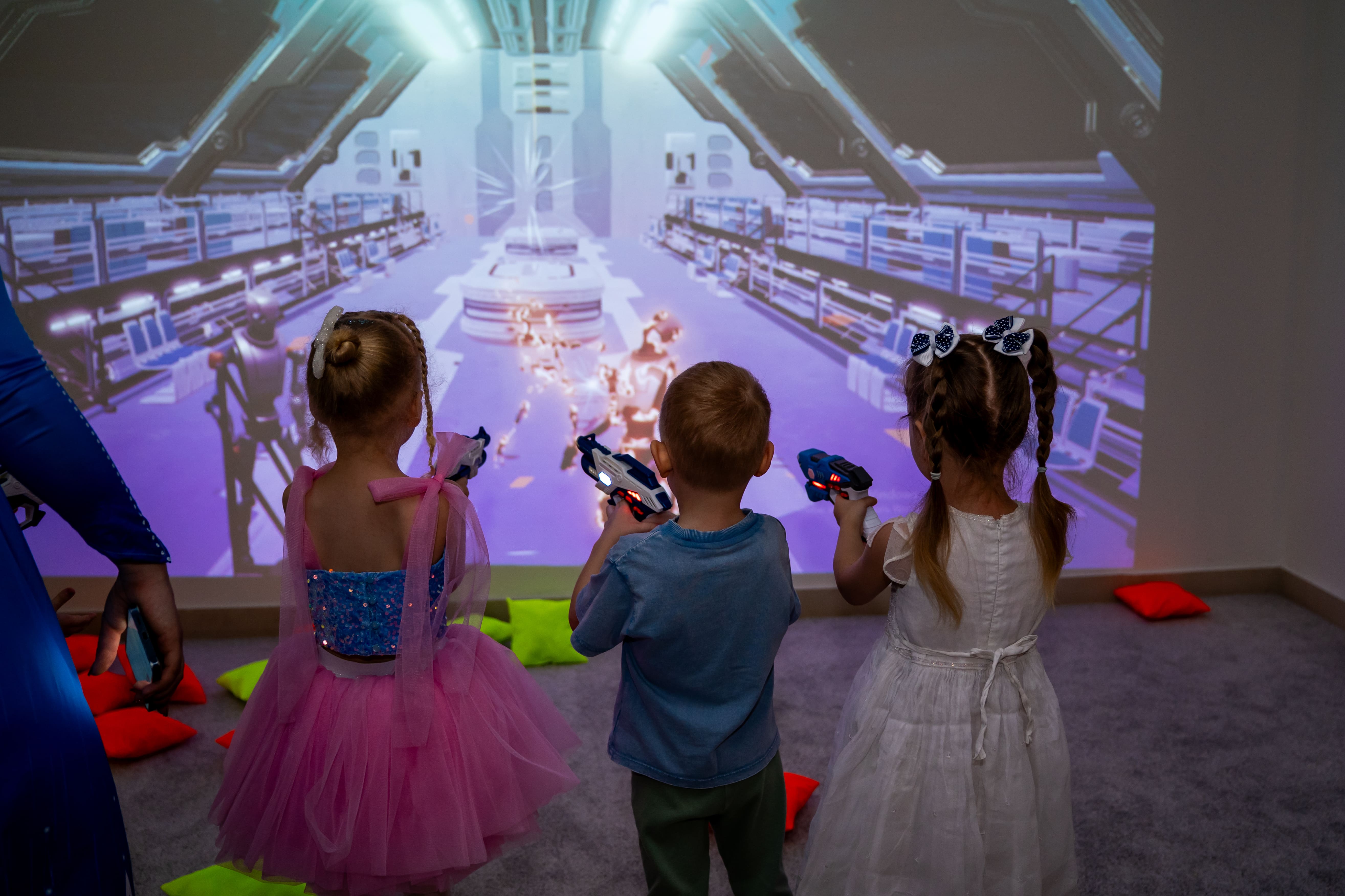 Новый лофт в ТЦ «Золотая Миля» — 200 м² для праздника! Виртуальная реальность, бластеры, тир и интерактивная стена ждут гостей. Идеальное место для детского дня рождения!